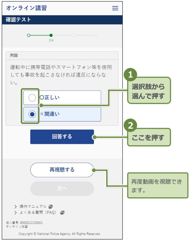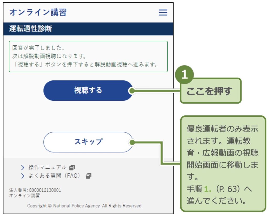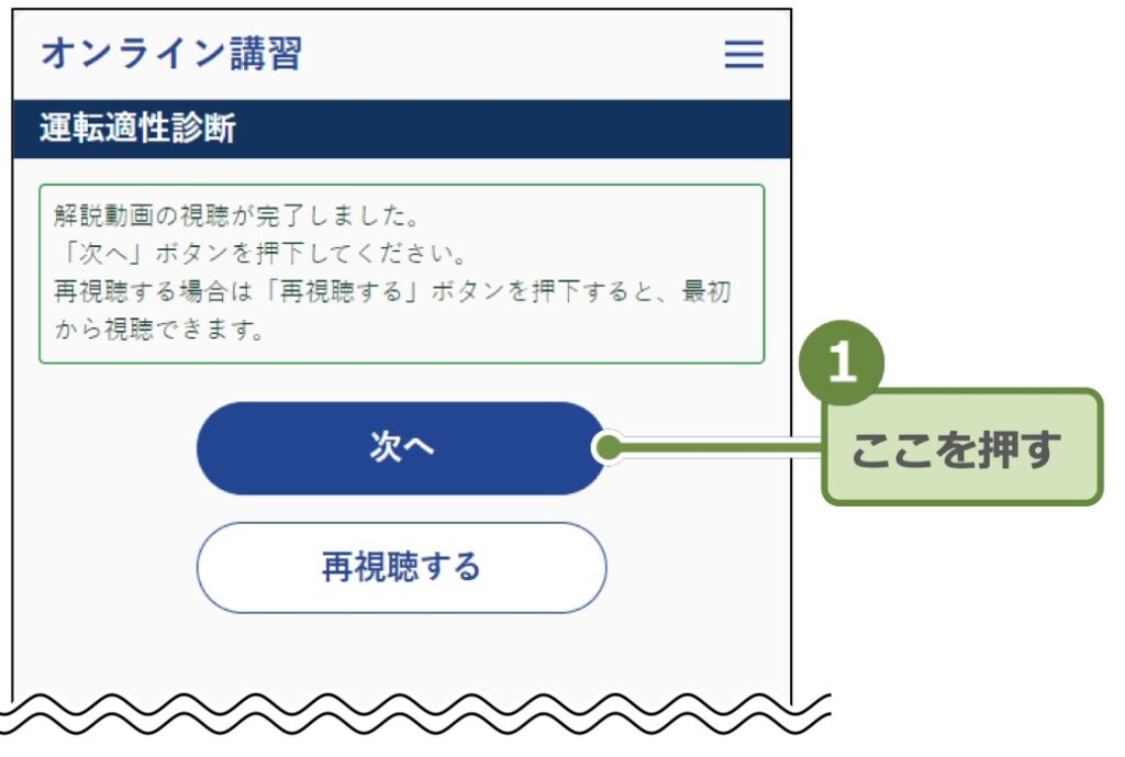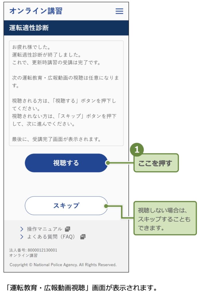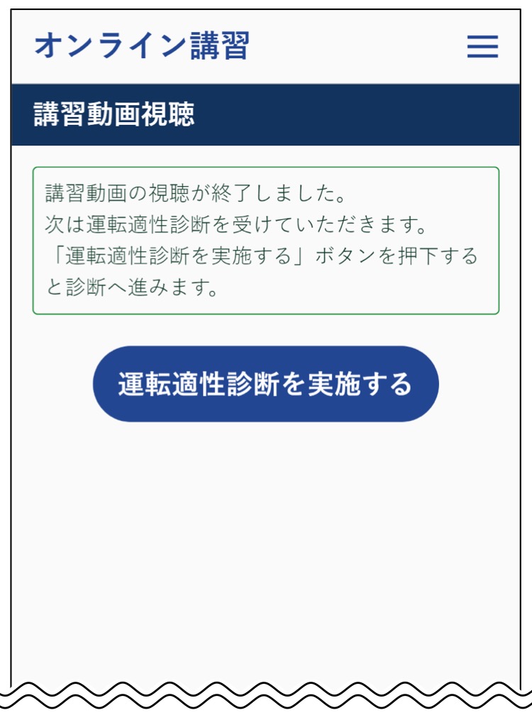 適性診断が終わると最後の最後に運転教育・広報動画が有りますがこれは任意でしたので私は視聴しませんでした