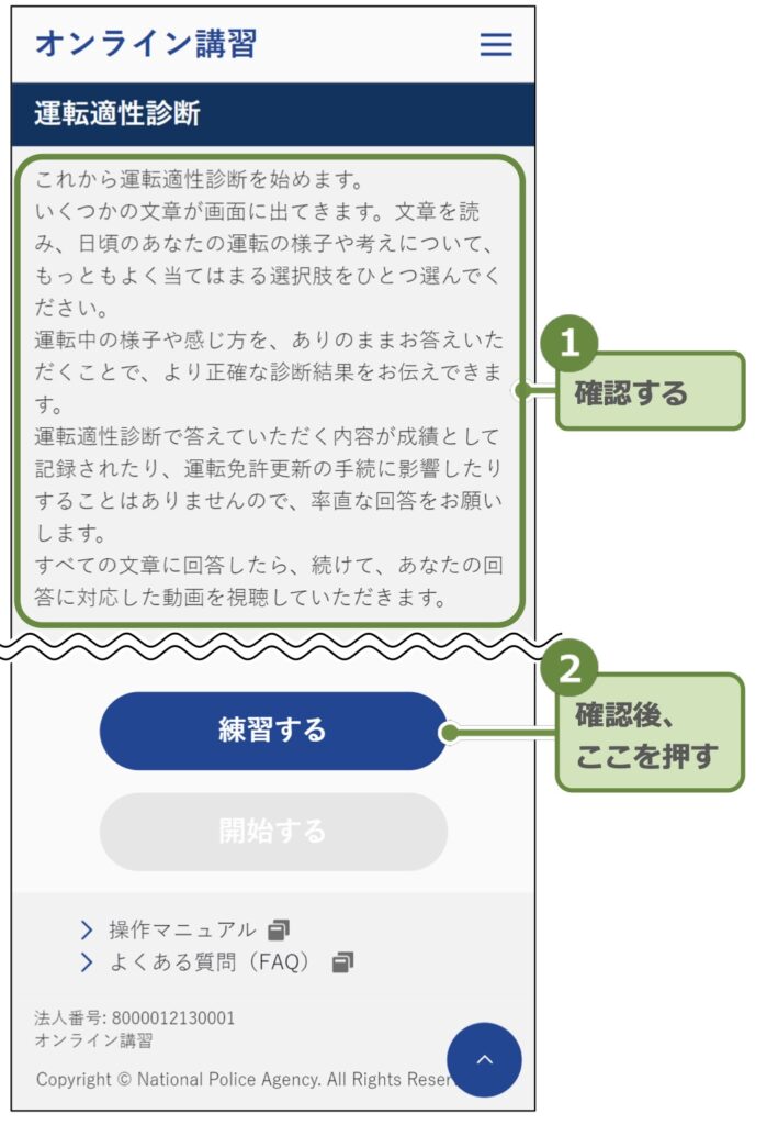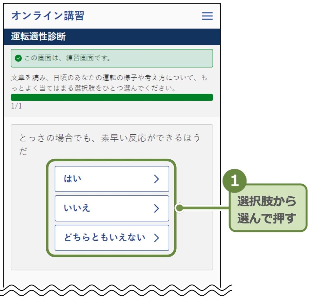 講習動画の視聴と確認テストが終わると運転適性診断を受講しますが、これがくせ者でした