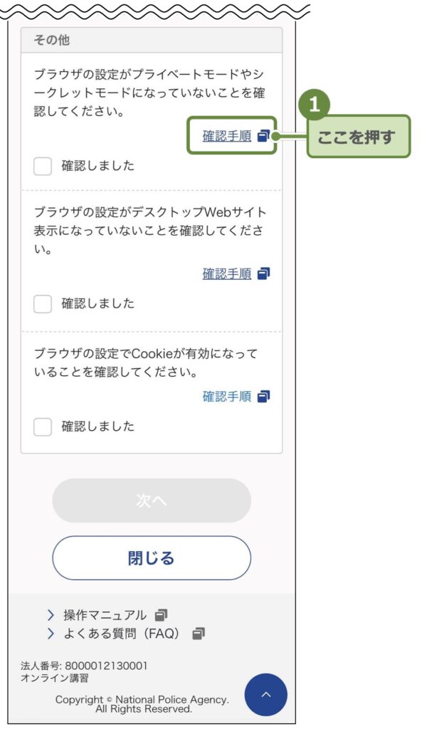 これもオンライン講習マニュアルに全て載っていますが基本説明に沿って進めていけば良いのですが途中似たような名前のボタンを何度もプッシュしなければならず非常に煩雑です。