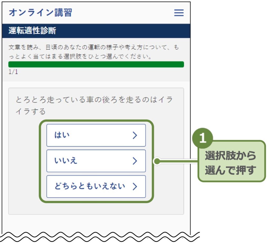 ここから文章が画面に出てきて、その運転の様子が自分に最も当てはまる選択肢を選ぶというものです。
