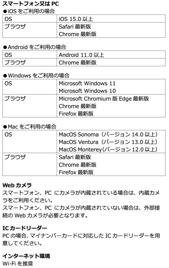 当初私はMacで受講する予定でしたがwebカメラをセッティングするのが面倒なのとICカードリーダーも持っていない為、ipadにしようと思いましたがこれもマイナンバーカードにアクセス出来なかった為、渋々iphoneにしました。