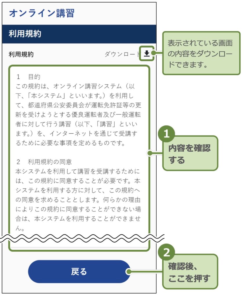 オンライン講習とはこれまで運転免許センターや警察署等で受講していた運転免許の更新時講習をスマホや PC を使用して受講できる講習の事ですが対象となる受講者は、送付された更新連絡書(ハガキ)の講習区分が「優良運転者」又は「一般運転者」の人です。
