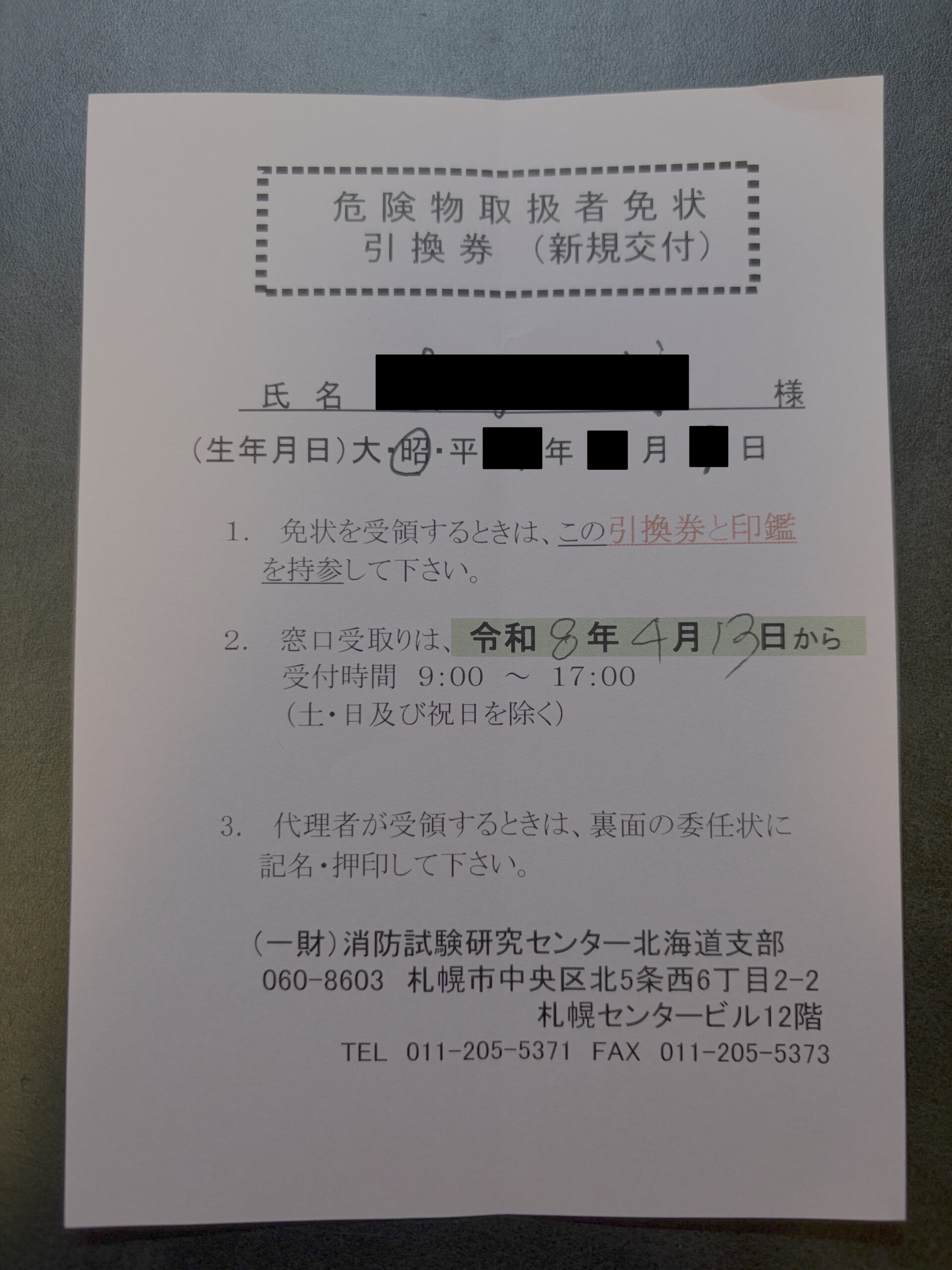 甲種危険物取扱者の免状申請【北海道】持ち物・場所・手順を実体験レポート