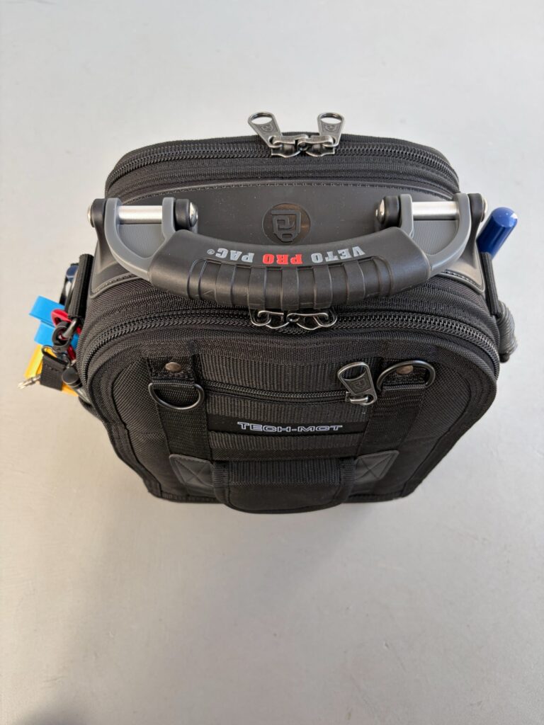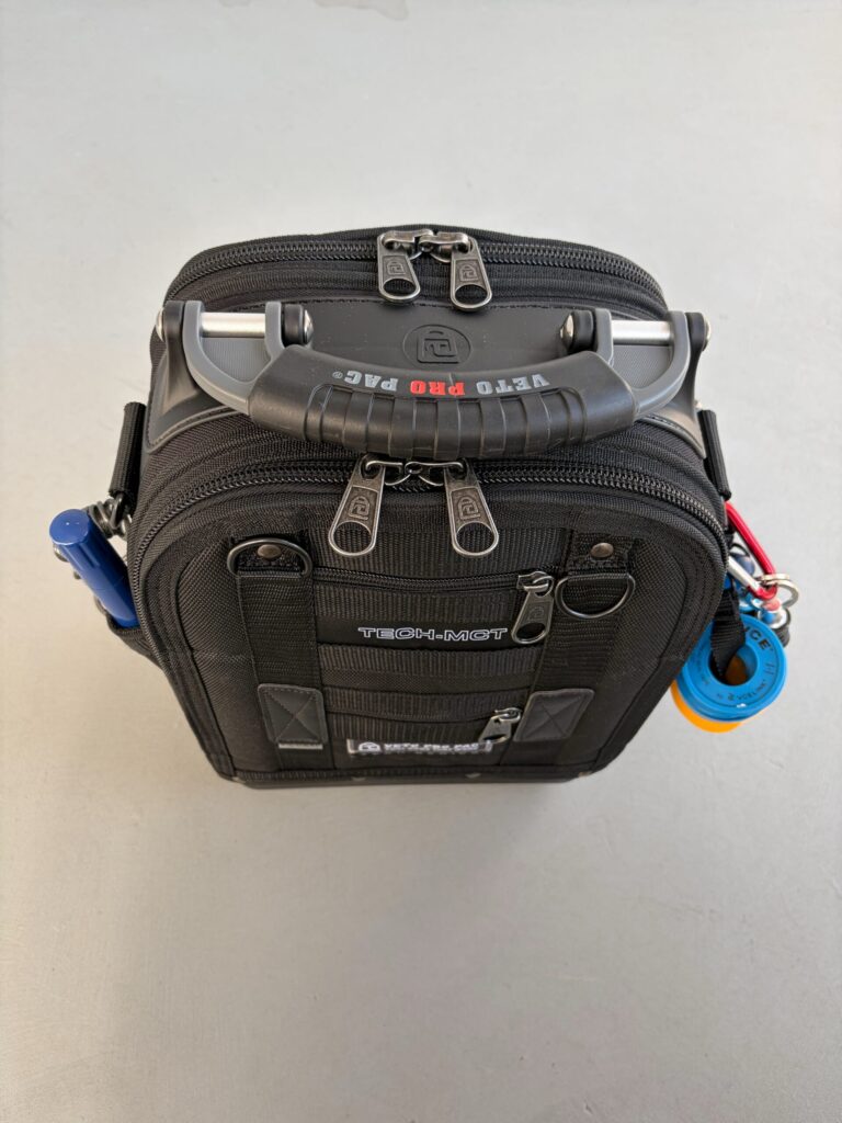 すでにM2Bを所有していたのだが、Veto Pro Pacのバッグ同士は専用のコネクションシステムで横に接続できる設計になっている。TECH-MCTの横にM2Bを繋げることで、収納量を大幅に拡張できる。重量は増すが、作業の規模に応じてM2Bを連結するかどうかを選べるので、普段はTECH-MCT単体で軽快に動き、大がかりな作業の日はフル装備で臨む、という使い分けができる。