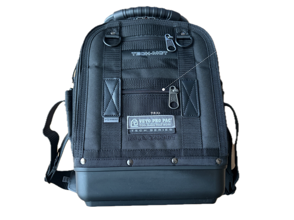 Veto Pro Pac TECH-MCT Blackoutは、「工具の視認性を上げたい」「現場での機動性を高めたい」というニーズにしっかり応えてくれるバッグだ。